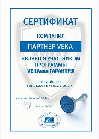 VEKA гарантирует, что сервисные специалисты партнёров, дилеров партнёров ООО «ВЕКА Рус» аттестованы и обучены по программе обучения ООО «ВЕКА Рус».
